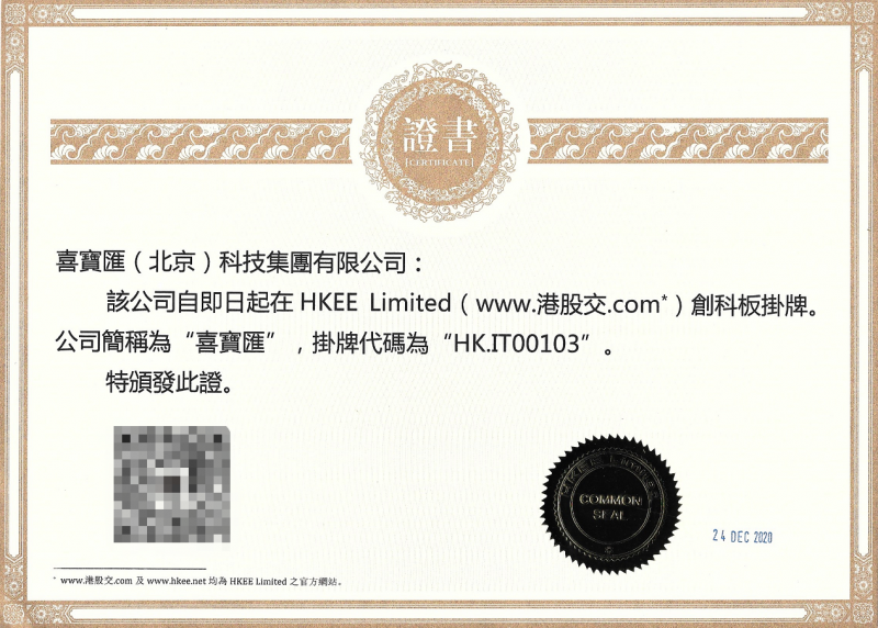 而近日,喜寶匯(北京)科技集團(tuán)有限公司成功邁入國(guó)際資本市場(chǎng),掛牌港股交HKEE,掛牌代碼:HK.IT00103。喜寶匯經(jīng)過(guò)多年的成長(zhǎng)發(fā)展取得了今天驕人的成績(jī)。