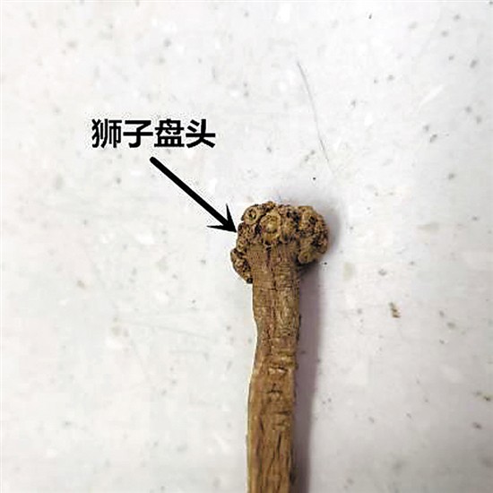 華成坤介紹,黨參的根頭部有多數(shù)疣狀突起的莖痕及芽,每個莖痕的頂端呈凹下的圓點狀,好像石獅子頭的卷毛造型一樣,因此俗稱“獅子盤頭”。傘形科植物迷果芹的根,外形與黨參相似,但沒有“獅子盤頭”。