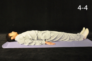 動(dòng)作4:伸膝呈仰臥位,雙手置于體側(cè),手心向下(圖4-4)。