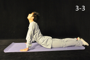 動(dòng)作3:肘關(guān)節(jié)逐漸伸直,繼而仰頭(圖3-3)。