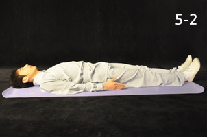 動(dòng)作4:伸膝呈仰臥位,雙手置于體側(cè),手心向下(圖4-4)。
